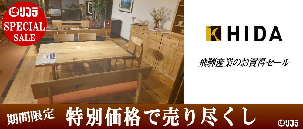 飛騨産業 現品!売り尽くしセール!! 期間は5月30日(火)まで開催。埼玉県リブラショールームで開催される飛騨の家具、飛騨産業商品を特別価格で販売いたします。リブラ展示現品処分品も有り。天然の木目や質感を実感して 頂けるだけでなく、家具の選び方・お手入れ方法のアドバイス・家具レイアウトのご相談にお答えします。 もちろん、飛騨の家具の高品質な新品商品もフェアならではのリブラ特別ご優待価格で!この機会をお見逃しなく!