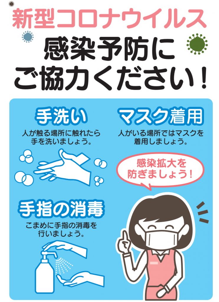 新型コロナウイルスの感染拡大防止の為、ご協力をお願いします。