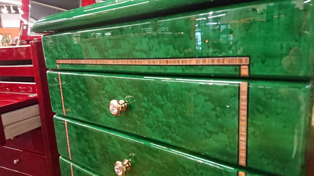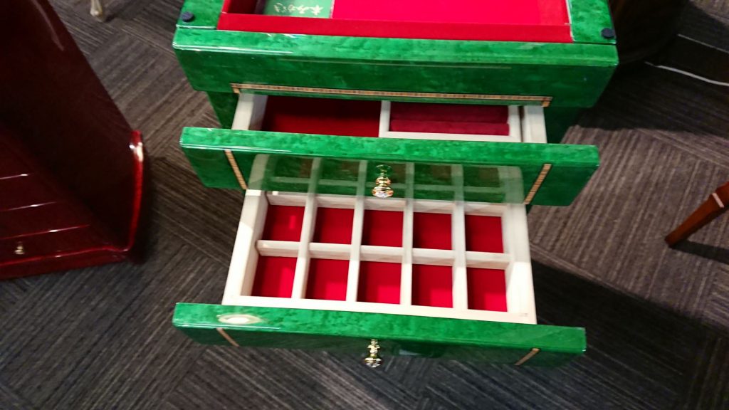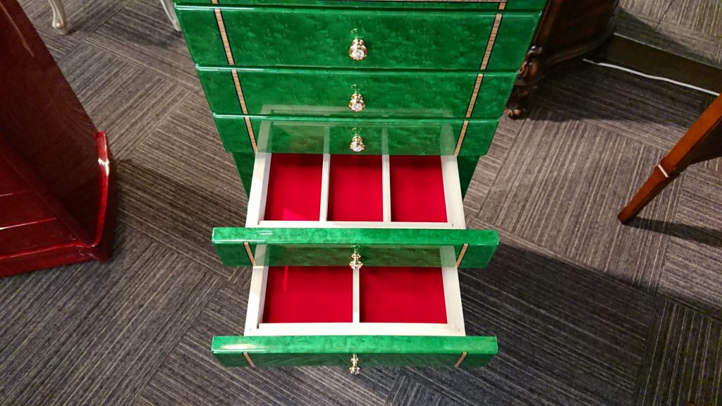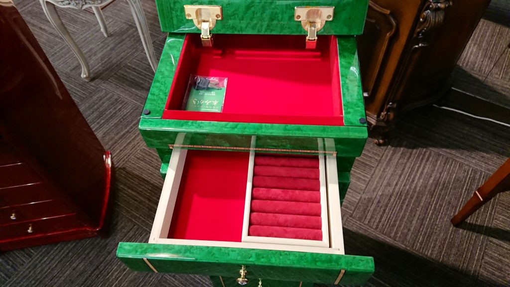 ホーム 商品一覧 ジュエリーボックス(宝石箱)オリジナルA型 本みがき高級家具 ジュエリーボックス(宝石箱)オリジナルA型 通常価格(定価) ¥469,700(税込) セール価格(特価) お問い合わせください。 品番 宝石箱 オリジナルA型 硬質ポリエステル樹脂本磨き塗装 バーズアイメープル グリーン色 W350xD350xH1000 一覧へ戻る