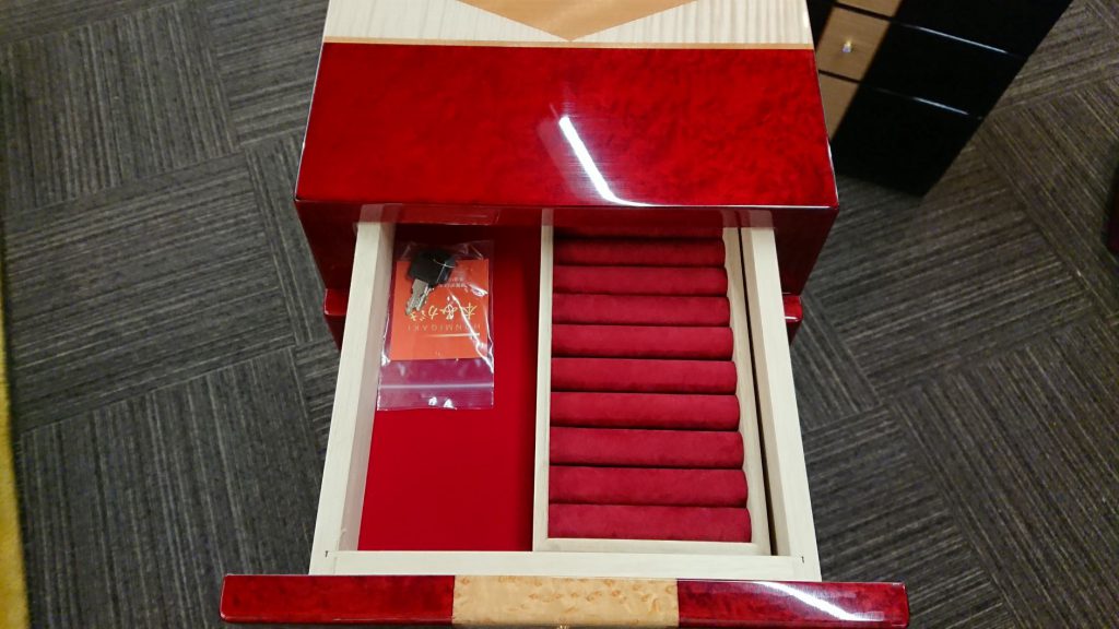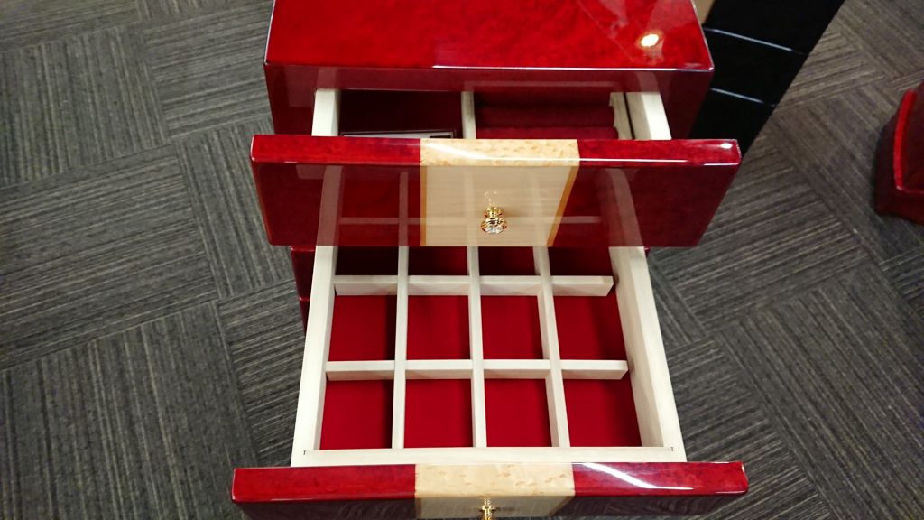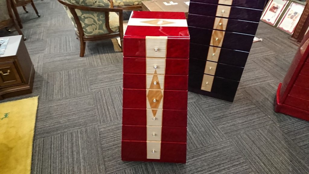 ホーム 商品一覧 ジュエリーボックス(宝石箱)フェスタ 本みがき高級家具 ジュエリーボックス(宝石箱)フェスタ 通常価格(定価) ¥469,700(税込) セール価格(特価) お問い合わせください。 品番 宝石箱 フェスタ 硬質ポリエステル樹脂本磨き塗装 バーズアイメープル ワイン色 W480xD370xH1010 一覧へ戻る