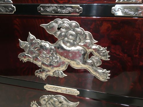 3. チェスト3段 匠塗 唐獅子手打ち