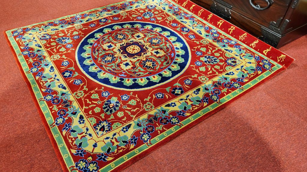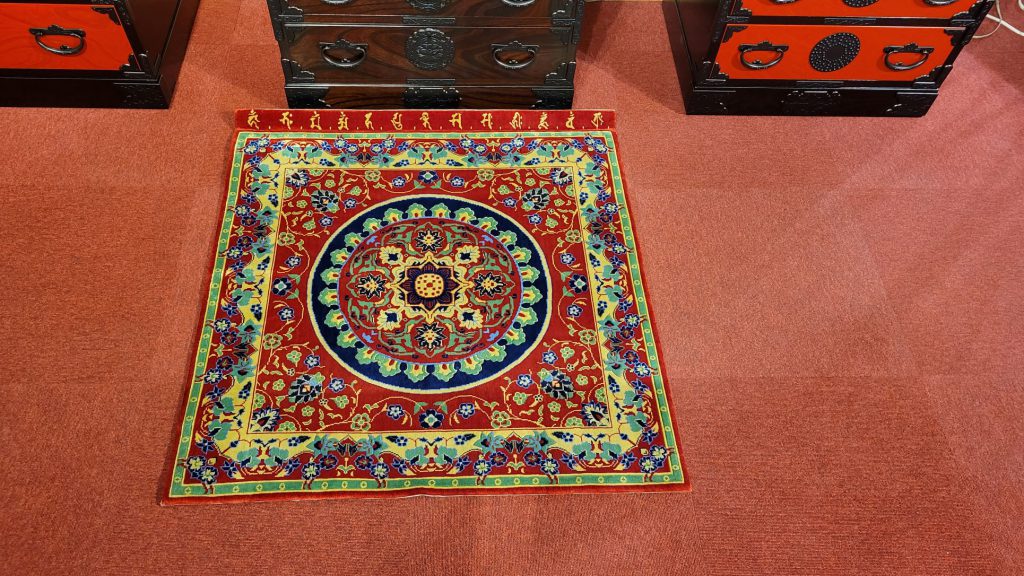 現在、仏壇の前には金襴の座布団が敷かれていることが多いようですが、正しく言えばこれは間違いです。本来は僧侶がお詣りをされる時にしか出さない座布団であったのです。しかし、その金襴の座布団が無いとお仏壇の前は映りが悪く、 座りにくいものです。現在イ草の縁に布をつけた拝敷と呼ばれる物はありますが、総じて物足りなさを感じます。