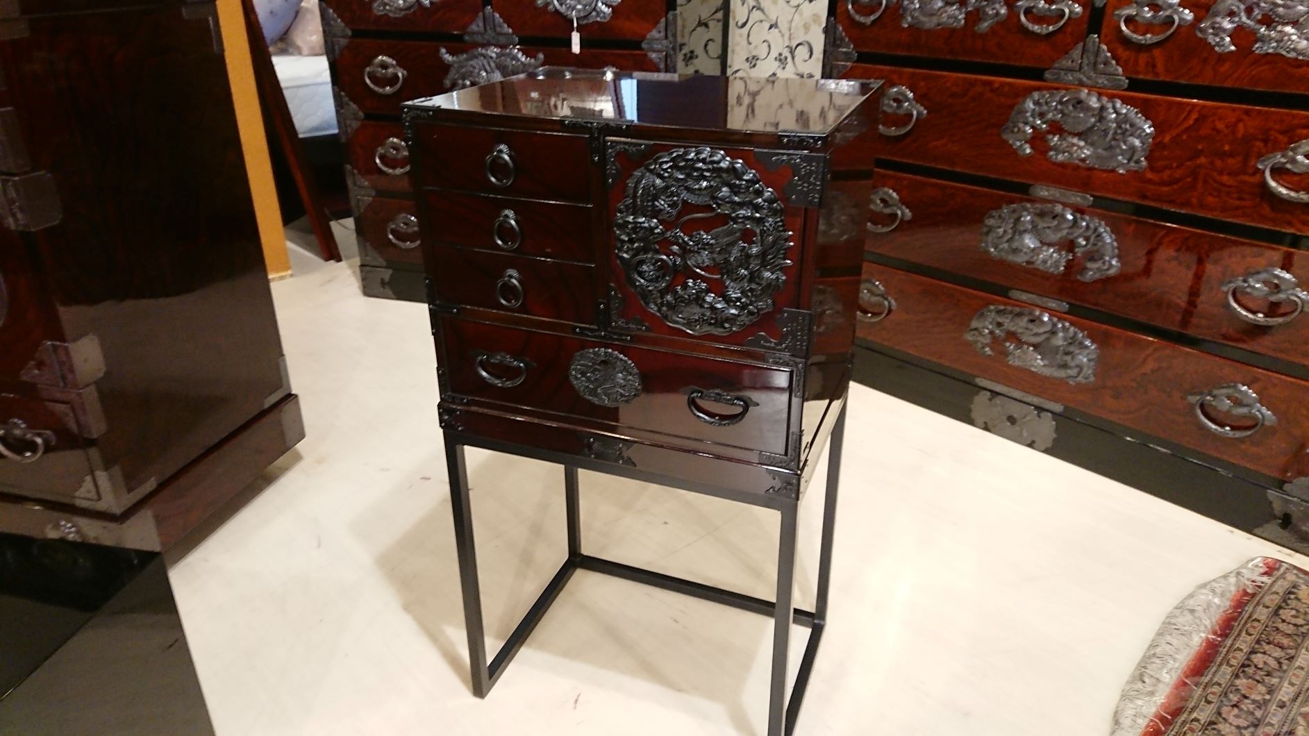 ホーム 商品一覧 仙台箪笥 仙台箪笥 仙台箪笥 通常価格(定価) 限定商品 セール価格(特価) ご成約済み 品番 脚付手許小箪笥(木地呂塗り) 仙台箪笥 【限定商品】 脚付手許小箪笥(木地呂塗り) W410xD300xH750 金具鋳造 龍(黒) 一覧へ戻る