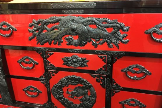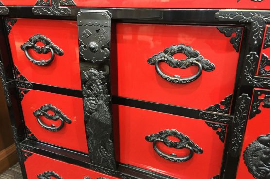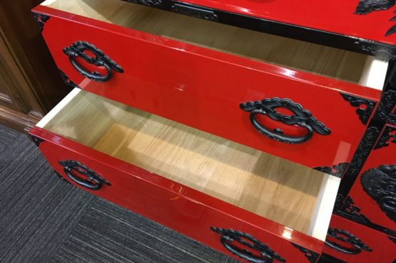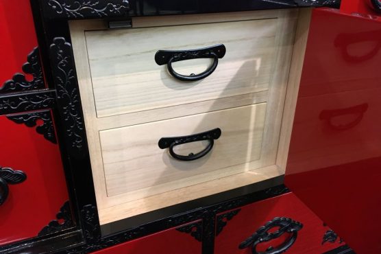 3. 横長箪笥D 赤黒呂塗り 手打ち金具