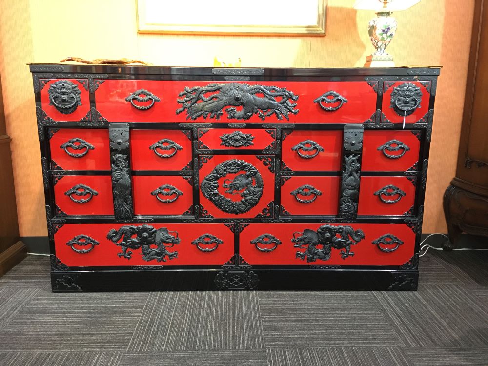 横長箪笥D 赤黒呂塗り 手打ち金具