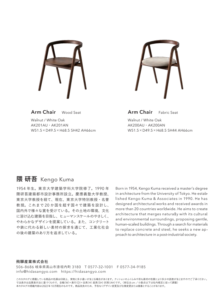 ホーム 商品一覧 隈 研吾デザイン SHIKA アームチェア 飛騨産業 隈 研吾デザイン SHIKA アームチェア 通常価格(定価) ¥110,000(税込) セール価格(特価) お問い合わせ下さい 品番 AK201AU デザイナー 隈 研吾 W515ⅹⅮ495ⅹH685 ウォールナット材(写真) 一覧へ戻る
