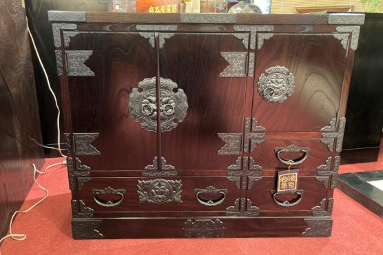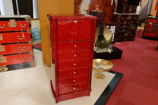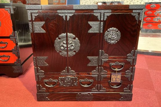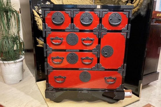 岩谷堂箪笥 車箪笥 呂塗り(赤黒)梅にうぐいす型
