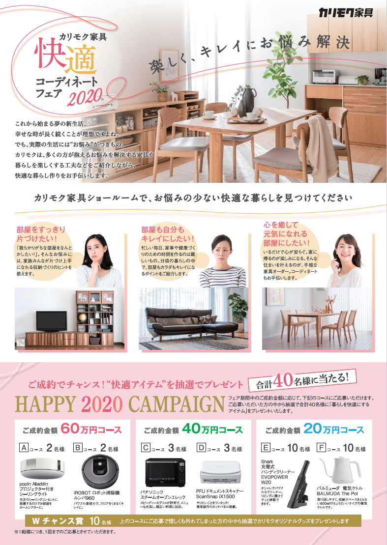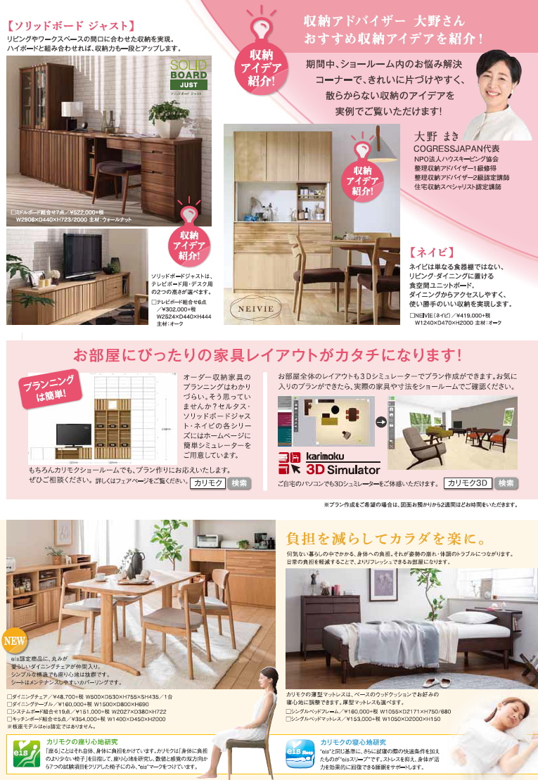カリモク家具多摩ショールーム『快適・コーディネートフェア』を2月15日16日の2日間で開催します。当日はリブラ専門スタッフ・カリモクショールームのスタッフがお客様の家具選びをサポートいたします。「どのような家具を合わせたら良いのかわからない」、「カラーコーディネートのアドバイスをしてほしい」、「商品について詳しく教えてほしい」など家具選びで迷われたら、お気軽にスタッフにお声を掛けてください。また、この2日間でご来場が出来ないお客様はご連絡頂きましたら『お見積り』もお受けいたしております。