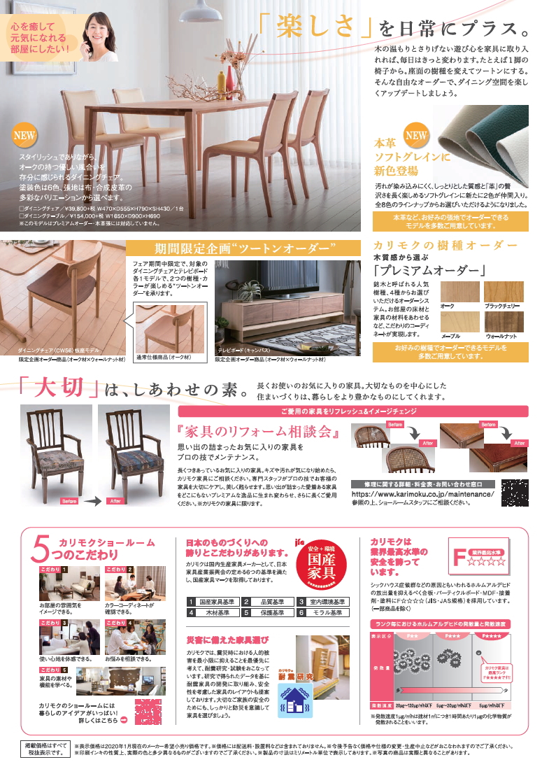 カリモク家具 多摩ショールーム販売会 2月15・16日
