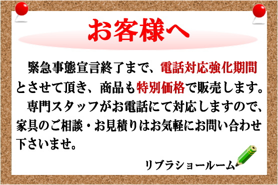 リブラショールーム お電話対応で!売り尽くし リブラショールーム内、展示在庫一掃処分売り尽くしセールを本日より開催。全館クリアランスの為、インテリア小物から大型家具、国内一流ブランド家具の品を展示現品・お電話特別特価価格で大処分致します。展示現品になりますので、早い者勝ち!ご来場を心よりお待ち申し上げております。