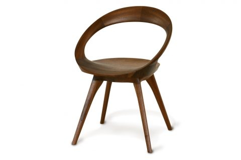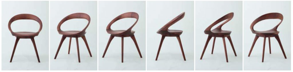 円を描く背と座は強度を持たせるために木材を接いで形成されています。ただ木材を接ぐのではなく、木目が繋がるように職人が一つ一つ合わせ、繊細な美しさを生み出しています。