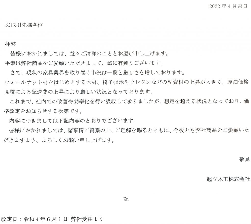 【アネロチェア】価格改定のご案内