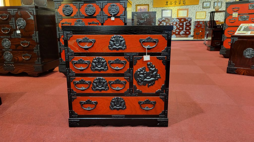 岩谷堂箪笥 横長箪笥D 藤原塗り(赤黒)&手打ち金具