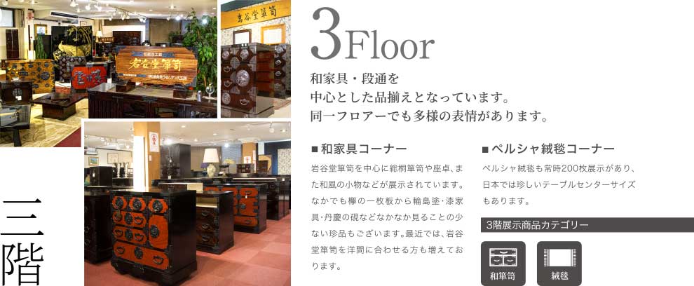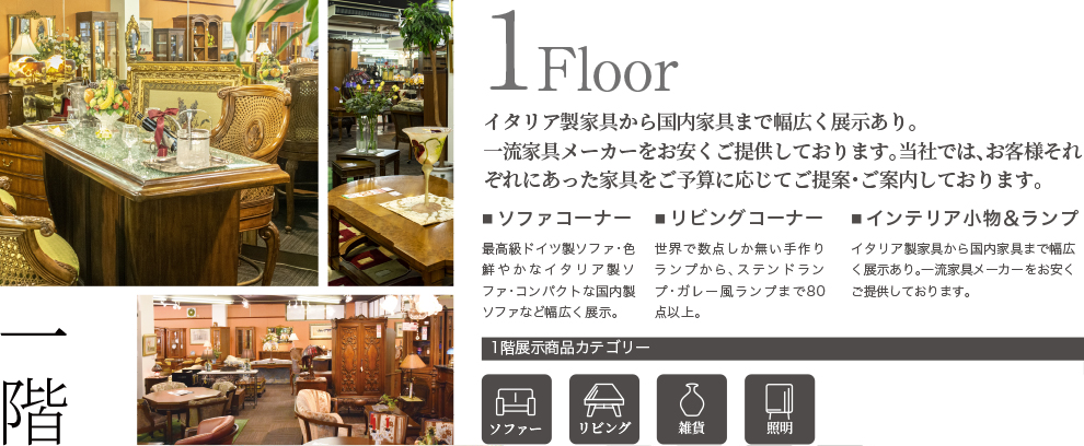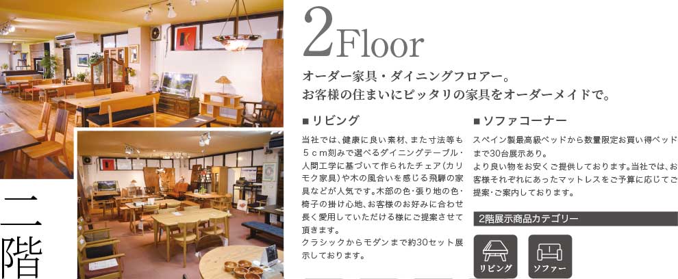 創業以来70年、「物を売るのではなく満足を売る」をモットーとし、お客様と共に歩む店、共に考える店として、地元 地域のお客様をはじめ、数多くのお客様に支持されて参りました。70年以上もの 長い間ご支援頂いたものも信頼のた まものと自負しております。心地良いと思える家具やインテリアは、お客様ごとに異なりまた年齢を重ねるにつれて物 の価値観や感性も変化します。私共はお客様 と共に考え、最適なプランニングを提供したいと思っています。それがお 客様の「満足」につながれば幸いです。また、本社ビルも完成。是非、当ショールームへお立ち寄り下さい。心よりお 待ち申し上げております。