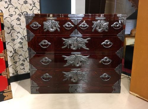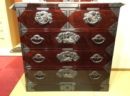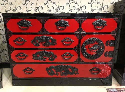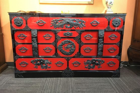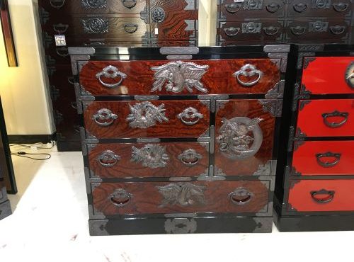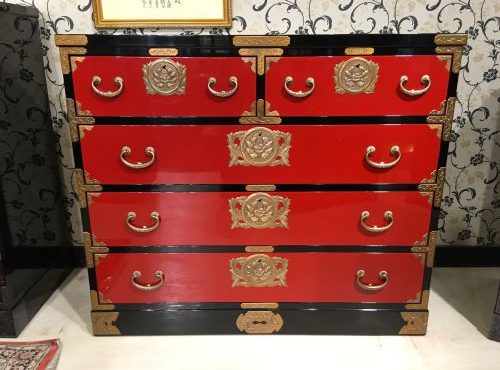 横長箪笥D 赤黒呂塗り 手打ち金具